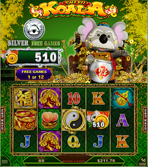 Two Yin Yang symbols with a Gold, Silver or Bronze symbol on reel 5 initiates the Free Games and activates the corresponding Repeat-Win Lucky Pot.